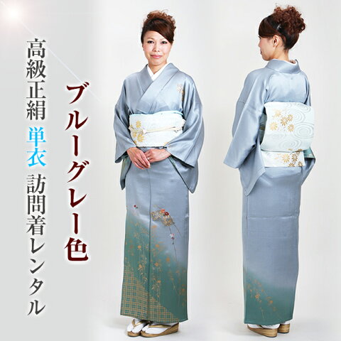【スーパーSALE 半額】【訪問着】単衣(6月/9月向け着物)ブルーグレー色 NT-303 【訪問着 6月 9月】夏の着物 訪問着レンタル 着物レンタル お宮参り 七五三 入学式 お茶会【往復送料無料】【レンタル】