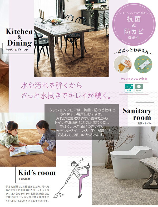 ■クッションフロア(ラグマット)取り扱いご注意はこちらおすすめダイニングラグヘリンボーンブレイニーチルトパインデスクカーペット木目調 CF (3色)カルム(2色)床暖房対応 木目2色パーケット┗ CF ダイニングラグ クッションフロア (トリムGY) こぼしてもサッと拭いて安心、清潔のソフトシートのダイニングラグは、お手入れ簡単です。