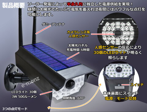 ダミーカメラ+センサーライトのWの抑止力で不審者からお家を守ります。