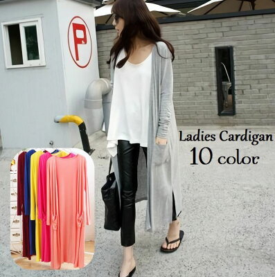送料無料 トッパーカーディガン 長袖 ロング丈 レディース トップス 薄手 羽織り 上着 前開き ボタンなし ポケット付き 婦人服 ゆったり ラフ 無地 ソリッドカラー 冷房対策 紫外線対策 UV対策 透け感 カジュアル 外出 お出掛け 女性 きれいめ