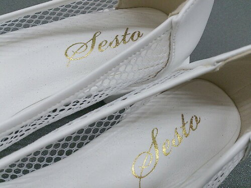 ◇ SESTO セスト スクエアトゥ メッシュ フラット パンプス シューズ サイズ24.0 ホワイト レディース 【中古】